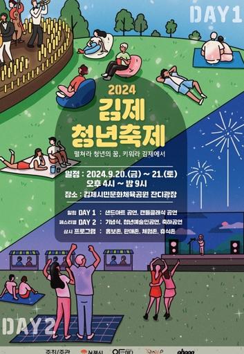 이번 '2024 김제 청년축제'는 오는 20일과 21일 오후 4시부터 밤 9시까지 김제시민문화체육공원 잔디광장에서 실시될 예정이다.