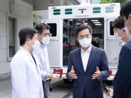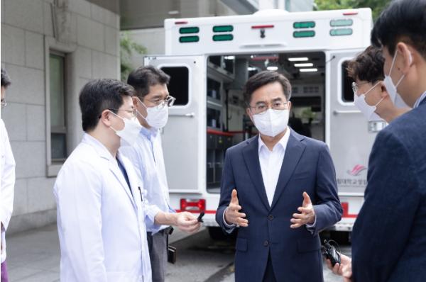 앞서 김 지사는 아주대병원에 10억 원을 지원키로 한 데 이어 지난 12일 의료현장 긴급점검회의를 열고 도내 권역응급센터 운영 기관 8곳에 40억 원을 지원하기로 하는 등 의료대란 사태 해결을 위해 도내 총 9개 권역응급센터(아주대병원, 분당서울대병원, 분당차병원, 순천향대부천병원, 한림대성심병원, 고려대안산병원, 명지병원, 의정부성모병원, 건강보험 일산병원)에 총 50억 원의 긴급 지원을 하기로 했다.