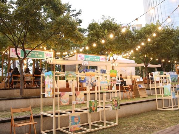 석촌호수 동호 잔디계단에서는 일러스트, 동양화 등 다양한 장르의 회화 작품 35점을 전시한다.