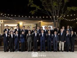 [singers news 씽어즈뉴스, 와보소기자] 윤석열 대통령은 9월 24일 저녁 국민의힘 지도부를 대통령실 앞 분수정원으로 초청해 야외에서 만찬을 가졌다. 대통령실과 국민의힘 지도부 만찬은 지난 7월 23일 전당대회 이후 새롭게 구성이 완료된 당 지도부를 처음으로 초청해 상견례와 함께 당 지도부를 격려하고 화합을 다지는 만찬이다.
