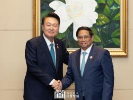 [singers news 씽어즈뉴스, 와보소기자] 아세안 관련 정상회의 참석을 위해 라오스 비엔티안을 방문 중인 윤석열 대통령은 오늘(현지 시간 10. 10, 목) '팜 밍 찡(Pham Minh Chinh)' 베트남 총리와 회담을 가졌다.