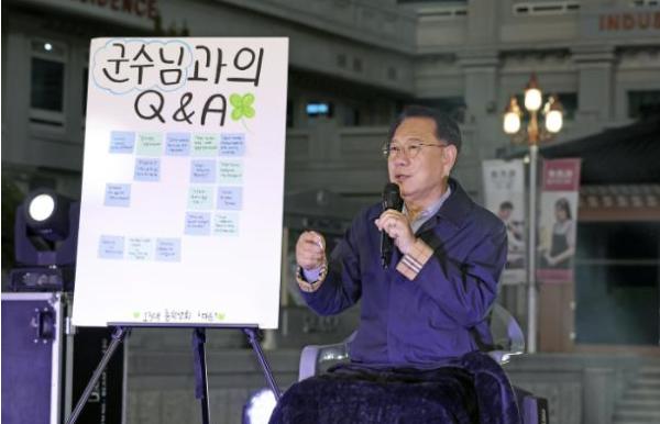 포스트잇 질문 형식으로 자유롭게 의견을 나누며, 근황 토크와 질의응답 등 편안한 분위기 속에서 군정에 대한 다양한 이야기가 오갔다.