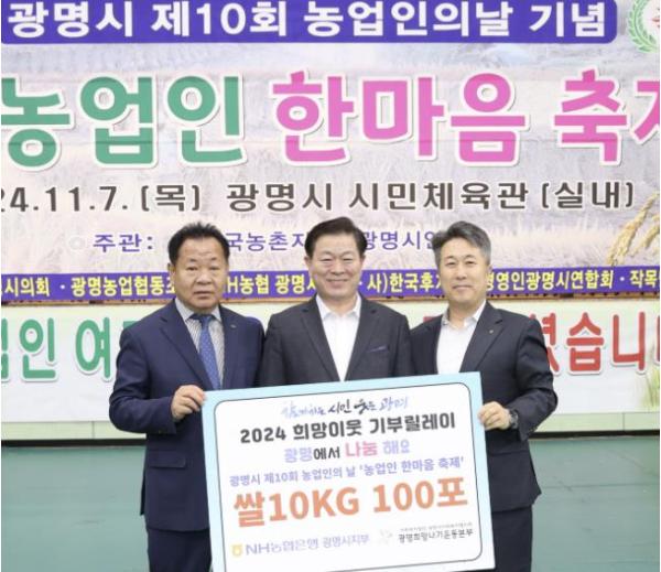 한편, 이날 장학금 전달과 기부가 이어져 행사에 의미를 더했다. 농촌지도자 광명시연합회장학재단이 농업인 대학생 자녀 4명에게 1인당 100만 원씩 장학금을 전달했고, NH농협은행 광명시지부는 백미 10kg들이 100포대를 기부했다. 광명농협도 500만 원 상당의 현물을 농촌지도자 광명시연합회에 전달했다.