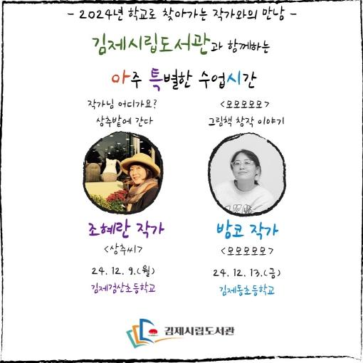 이달에는 조혜란 작가와 밤코 작가가 학교를 방문해 학생들과 손바닥 정원 만들기를 만들어보고, 그림책 창작에 대한 이야기를 나누는 등 다양한 활동으로 학생들과 만날 예정이다.