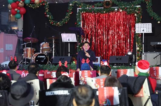 [singers news 씽어즈뉴스, 와보소기자] 박강수 마포구청장은 12월 24일 오후 ‘2024 레드로드 크리스마스 재즈 콘서트’가 열린 레드로드 R1 에어돔을 찾았다.