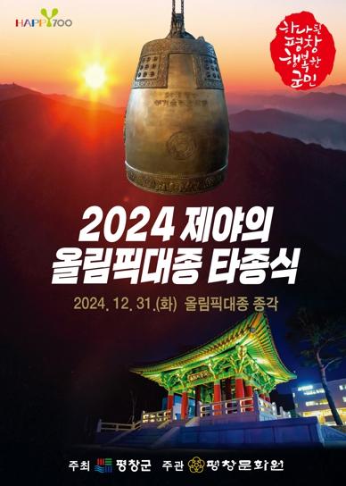 [singers news 씽어즈뉴스, 와보소기자] 평창군과 평창문화원은 31일 22시 30분부터 2024년 갑진년을 마무리하고 희망찬 2025년 을사년 새해를 기원하는 2024 제야의 올림픽 대종 타종 행사를 개최한다.