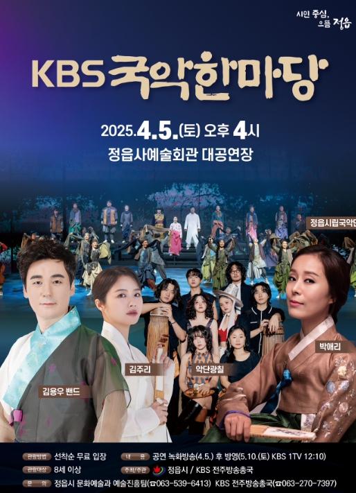 [singers news 씽어즈뉴스, 와보소기자] 정읍시가 다채로운 국악의 매력을 시민들과 함께 나눈다. 오는 5일 오후 4시, 정읍사예술회관에서 KBS ‘국악한마당’ 공개 녹화 공연이 열린다.